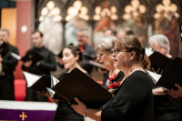 Zwei Chöre, ein Saxophon, ein Tonband und die experimentelle Annäherung an die «Messe pour double choeur» von Frank Martin: Das Ensemble Choeur3, das Ensemble Vocal Kaupert und Philippe Koerper begeisterten das Publikum mit «Sous la surface» in der St. Franziskuskirche.