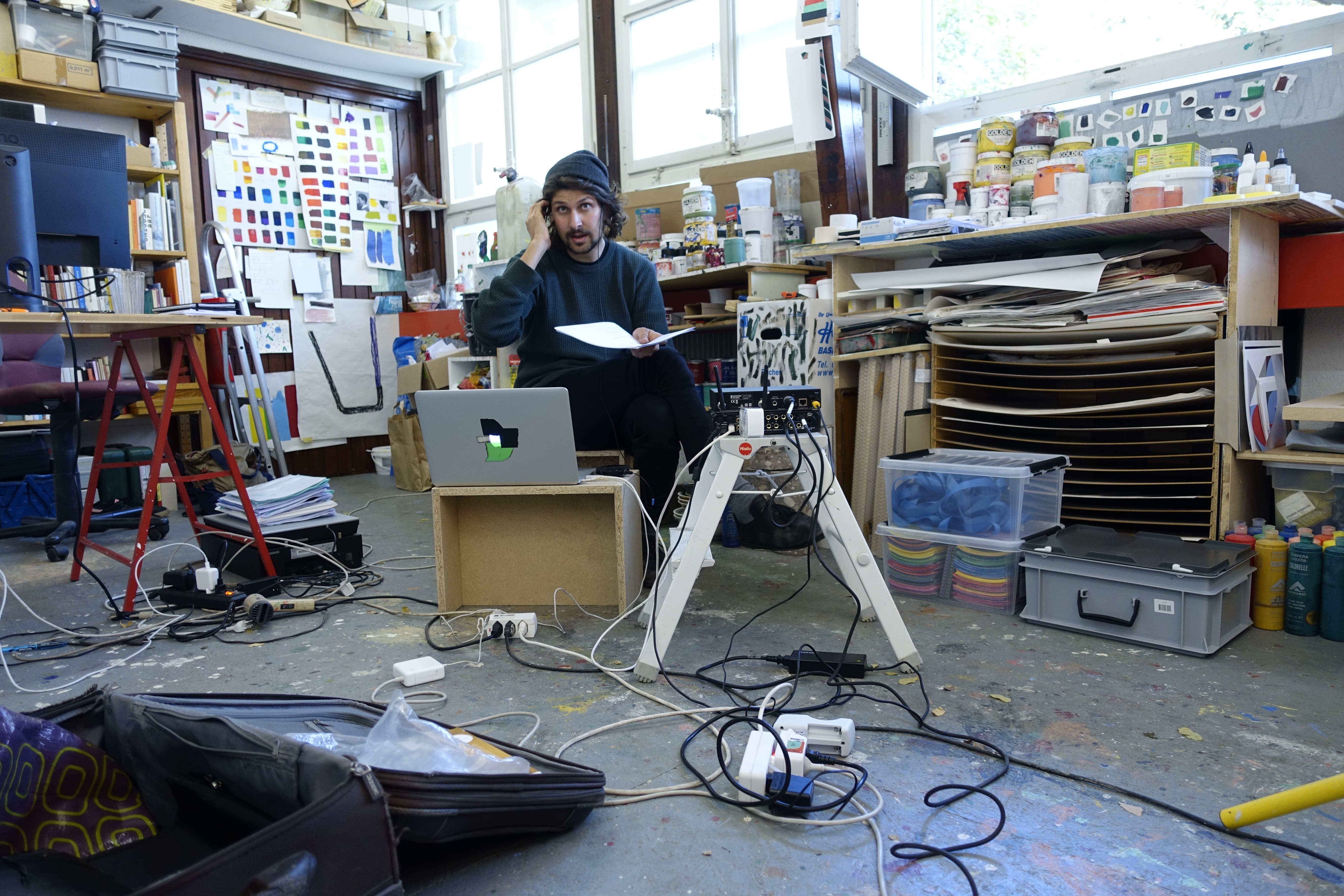 Komponist und Medienkünstler Lukas Huber lud das Publikum im intimen Rahmen vom Gartensaal des MUKS – Museum Kultur & Spiel ein, die Musikalität des Sprechens und mit ihm zu erforschen.