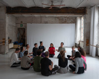 In Joris Camelin's Workshop wurde das Zusammenspiel von Stimme, Bewegung, Raumgefühl und Gruppendynamik erlebbar.